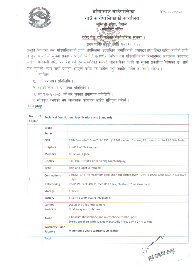 Laptop तथा printer खरिदका लागि दररेट पेश गर्ने सम्बन्धी सुचना
