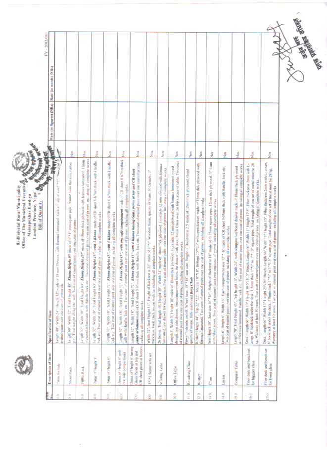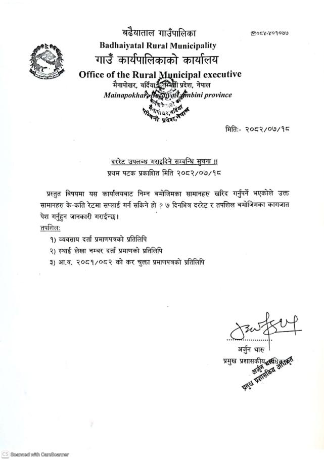 दररेट पेश गर्ने सम्बन्धि सुचना