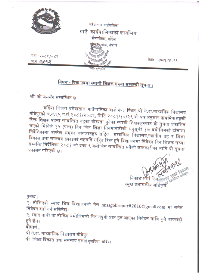 » रिक्त पदमा स्थायी शिक्षक सरुवा सम्बन्धि सूचना