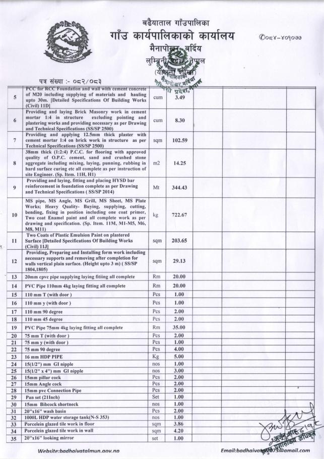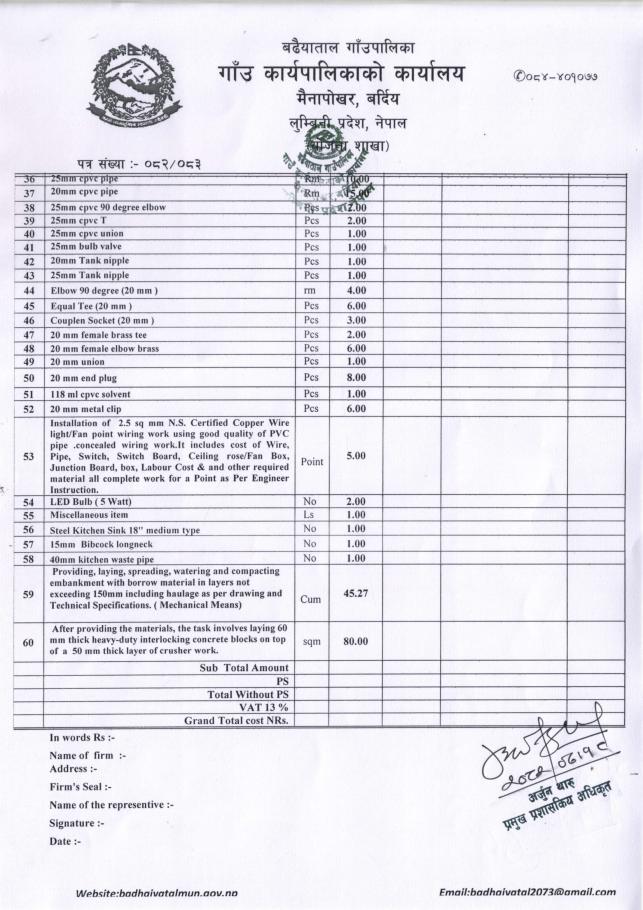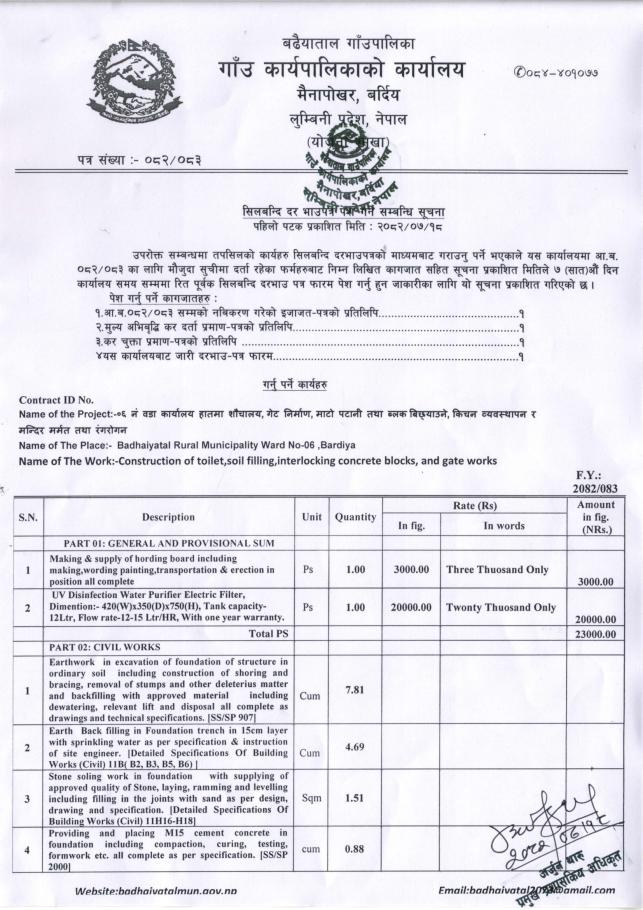 दररेट पेश गर्ने सम्बन्धि सुचना