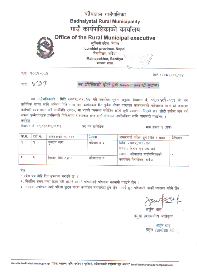 बन प्राबिधिककाे छाेटाे सूची प्रकाशन सम्बन्धि सूचना