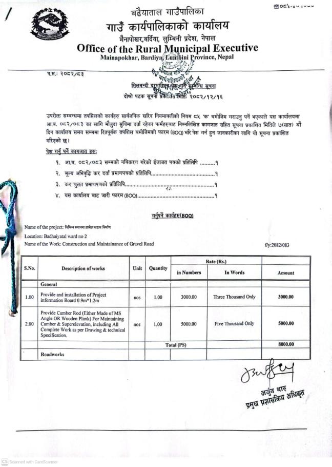 सिलबन्दि दरभाव पेश गर्ने सम्बन्धि सूचना
